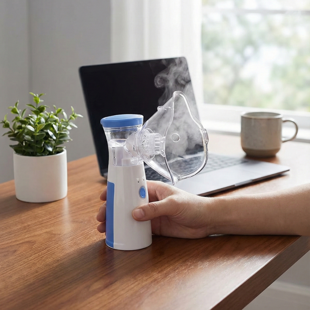 AirGo Mini™ è il nebulizzatore mesh compatto pensato per rendere l’aerosolterapia più semplice e comoda nella routine di tutti i giorni. La nebulizzazione fine aiuta a veicolare la soluzione in modo uniforme, riducendo sprechi e tempi morti. È leggero, pratico da trasportare e pronto all’uso.